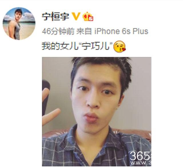 刚刚宁桓宇更博晒出一张照片,称:我的女儿“宁巧儿”。