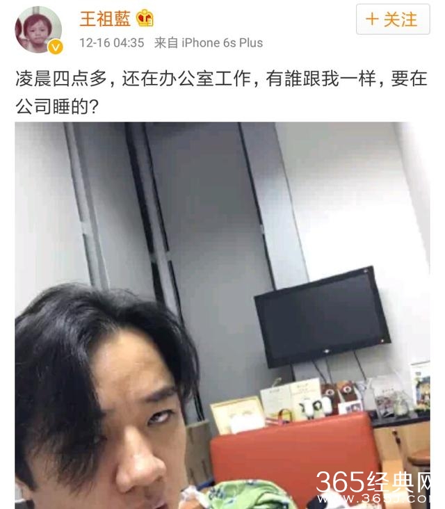 王祖蓝今天发了一条微博,说凌晨四点多,还在办公室工作,有谁跟我一样,要在公司睡的?