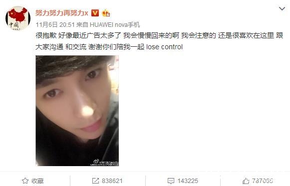 11月6日,张艺兴更了一条,说自己会注意跟兴迷沟通的,反正呢张艺兴的更博频率就是一般是下午,然而上午就一般不会发的。