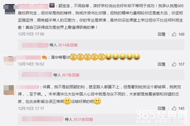 酸民批评赵丽颖的学历以及出身,甚至还有人狠呛,大学没毕业的人别来,令许多粉丝倍感心疼、纷纷留言要她加油,并且给予肯定,这篇贴文更有高达100万转发次数。好朋友谢娜也亲自回覆,讚赏并认同对方的努力以及现在的成果,那麽多人爱你,包括我,这一路是辛苦的,也是幸运的,我为你骄傲!