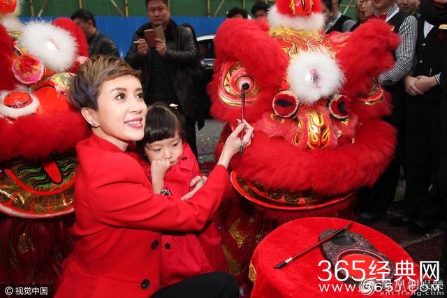 金巧巧与女儿为舞狮点睛。