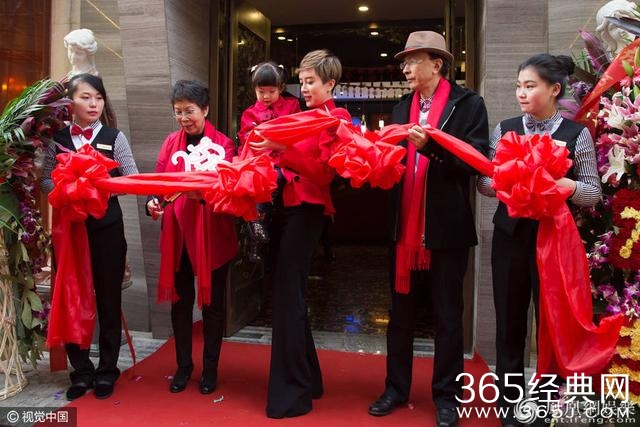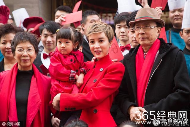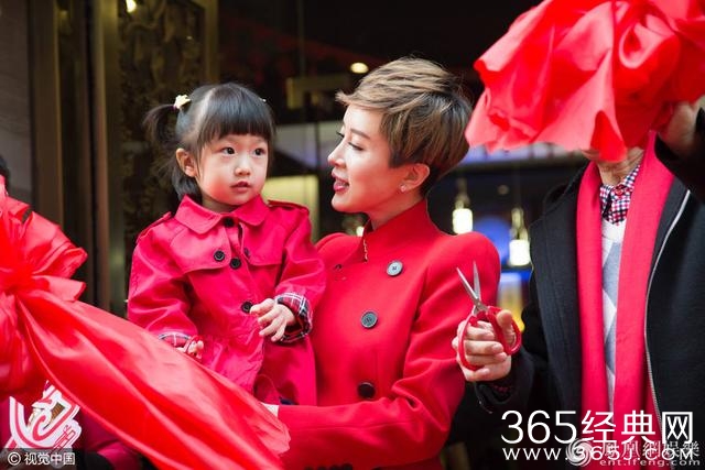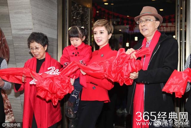 据悉,金巧巧于2011年与博纳影业集团总裁于冬相恋;2013年8月9日,二人的女儿出生。于冬曾有过一任妻子,臧黎璐,金巧巧为二婚妻子。图为金巧巧与父母一同剪彩。