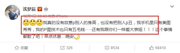 沈梦辰前些日子发了,我真的没有故意p别人的身高,也没有把别人p丑?还装作一脸无辜的样子,真实恨的牙根痒痒了!!!