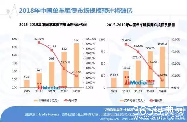 科技由人创造,科技带来的恩惠自然也造福于人类,给群众带来便利是科技发展其中的意义。租赁单车的方便之处在于用户可以在任意出现租赁单车的地方实现线上开锁、线上支付,很大程度上解决了群众在公交地铁与上下班“最后一公里”的衔接问题。据iiMediaResearch数据显示,单车租赁用户增长率虽然将逐渐减缓,但用户规模将不断增大,未来市场潜力巨大。