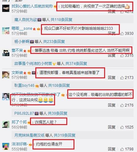 我们都知道拒绝的这几类问题明星多是当红小鲜肉居多,可能很多都是网友们喜欢的爱豆,但是是非分明的网友们还是支持了央视的决定,称“三观最正的晚会”,同时部分网友指出还有肇事逃逸、约炮都要拒绝~