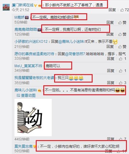 甚至有网友称“那小鲜肉不就都上不了春晚了,通通”~不过这一说法网友们并不认可,纷纷表示“鹿晗和TF可以”~