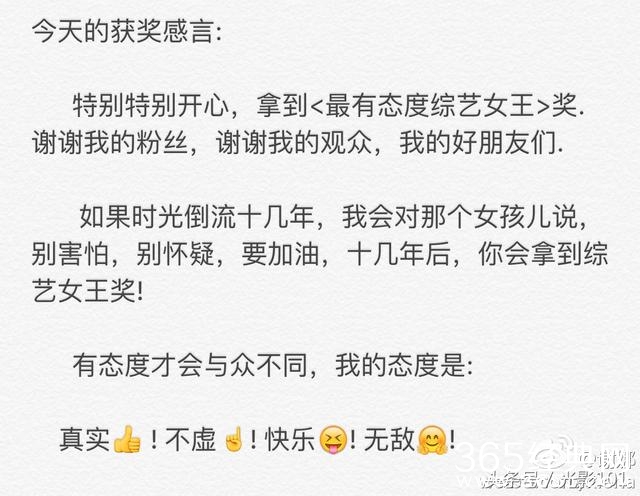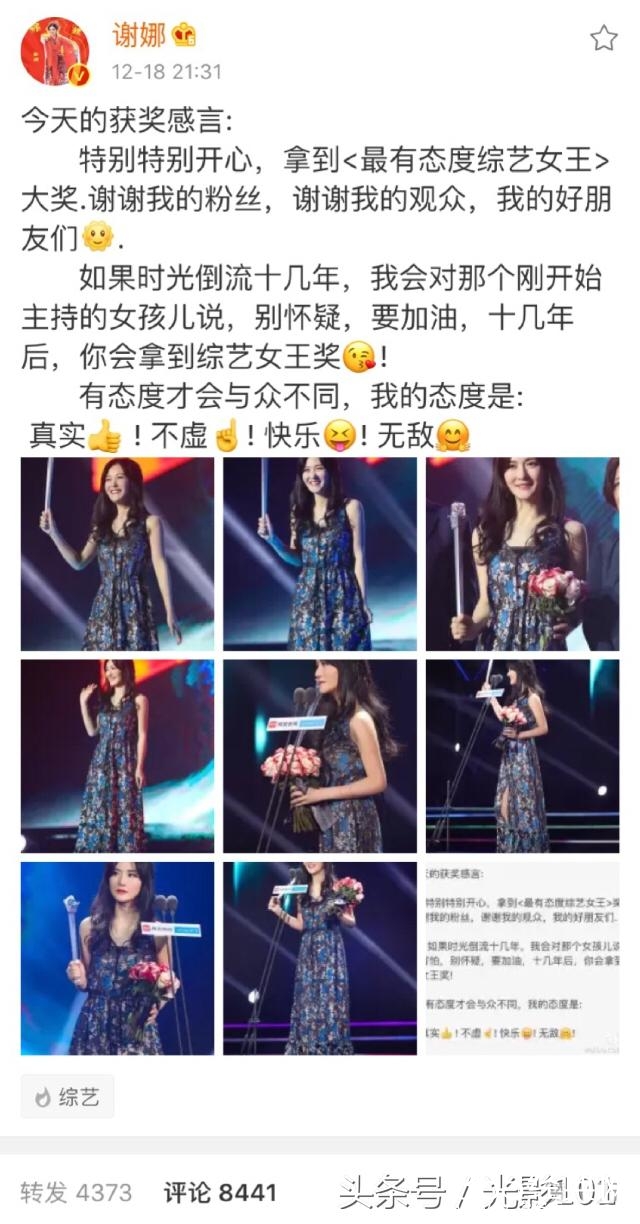 谢娜又获奖了,这次是最有态度综艺女王大奖,感觉谢娜是要把跟综艺有关的奖项全都拿个遍啊哈哈。