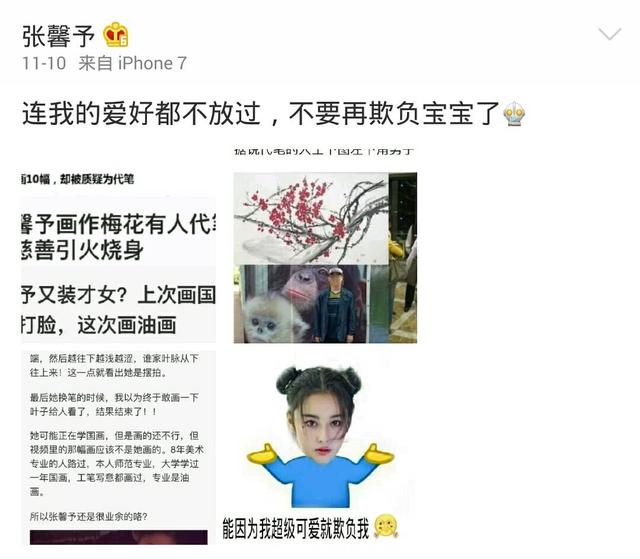 此事惹得张馨予发微博澄清:连我的爱好都不放过,不要再欺负宝宝了。
