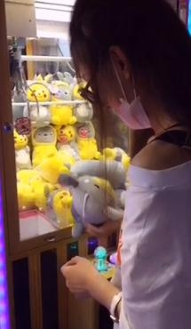 随后赵丽在娃娃机前亲自捉娃娃,而且非常顺利的捉到了一只,这让她心情非常好,开怀大笑