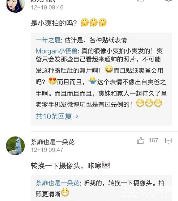 这小表情贴的,一看就是小爽拍的啊!爸爸只会发自己的帅照,哈哈哈…