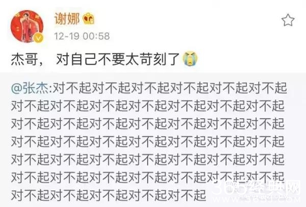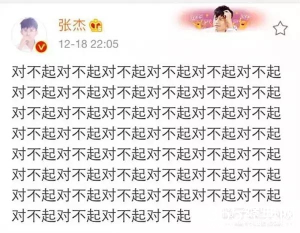昨天晚上,张杰在微博连发了46个对不起,满屏的都是对不起,也没有原因。