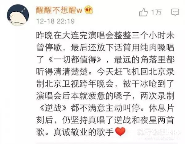因为不停咳嗽呛出了眼泪,脸上挂着泪的真唱完了《逆战》。