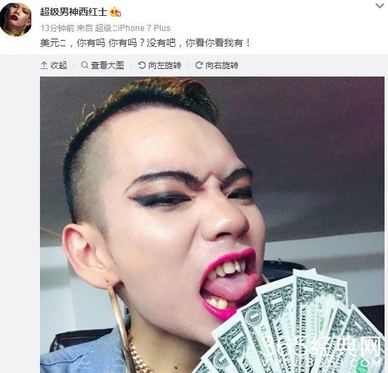 但是,西红士炒作似乎又走入老路了,开始在微博炫富了,12月19日,西红士又在微博中晒出一组图片,手里拿着一大摞美元百元大钞,忸怩作态,基金炫耀,西红士发文称:“美元,你有吗 你有吗?没有吧,你看你看我有!”