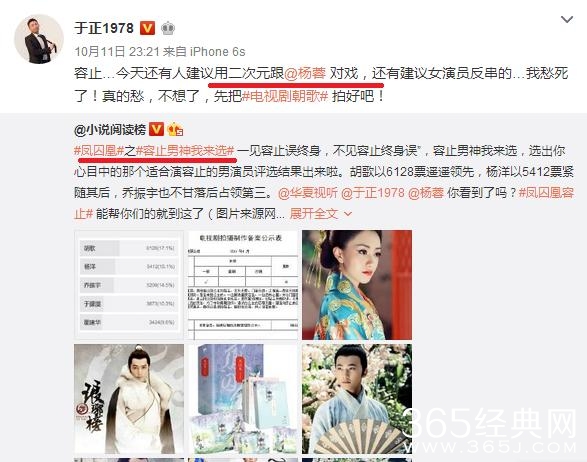 对于网友票选出来的三大适合容止的男明星,于正再次@杨蓉,再次证明了杨蓉即将担任女主。