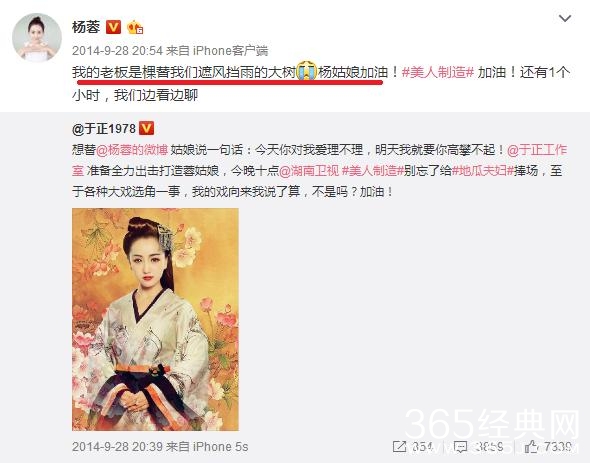 在2016年6月2日,杨蓉生日的前夕,于正发表了一篇长微博,更是感动了万千的蓉粉。