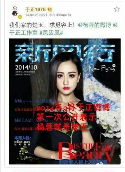 2014年9月25日,于正就在微博上公开表示,杨蓉就是楚玉。