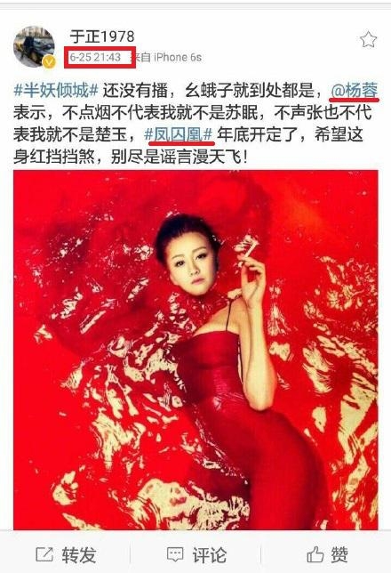 2016年6月25日,于正微博上再次带上杨蓉,宣称《凤囚凰》年底开定了!