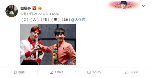前天,大张伟又跟白敬亭在半夜玩起了很有激情的创意互动