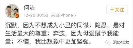 在发表的微博中,何洁写到:沉默,因为不想成为小丑的同谋;隐忍,是对生活最大的尊重;奔波,因为母爱赋予我能量;不恼,我比想象中更加坚强。圈内好友证实何洁和赫子铭正在办理离婚手续。何洁经纪人也转发。之前赫子铭曾不具名打电话到电台,谈婚姻烦恼,爆妻子可能出轨且要求离婚,求问如何争孩子和财产。