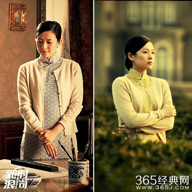 电影《危险关系》中,女神章子怡的旗袍造型明显华丽了不少,虽然颜色还是以素净为主,但增加了钉珠、刺绣修饰的旗袍看上去更有质感。而旗袍与针织开衫的组合,女人味爆棚。