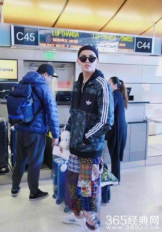 日前,吴亦凡穿红色羽绒外套撞衫大妈后,这次又穿“大妈花裤”搭飞机,果然任性!
