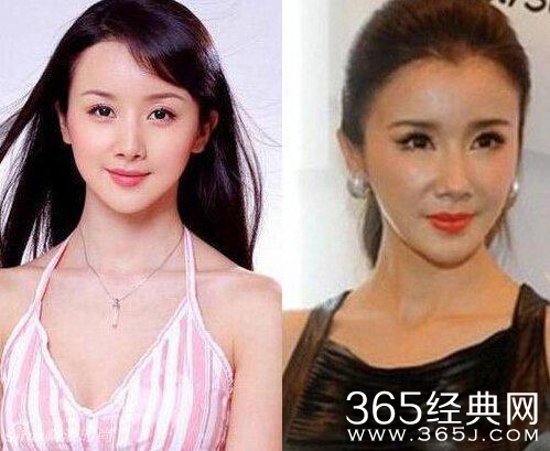 05年左右动了鼻子下巴,08年动了下颌骨颧骨。然后开始疯狂注射玻尿酸。13年左右崩坏。16年成了玻尿酸精。她的脸坚挺了大概八年。
