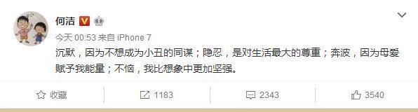 何洁深夜发文:沉默,因为不想成为小丑的同谋;隐忍,是对生活最大的尊重;奔波,因为母爱赋予我能量;不恼,我比想象中更加坚强。
