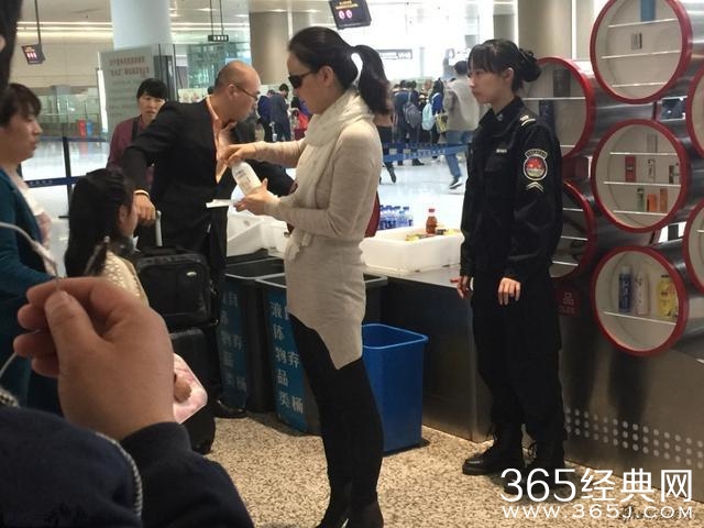 在上飞机的时候,按照机场要求,每个容器的容量不可多于100毫升(特意查的,从小没坐过飞机),因此陶虹当场打开瓶盖,要女儿当场喝完,一看就是那种会生活,会持家的严厉妈妈。