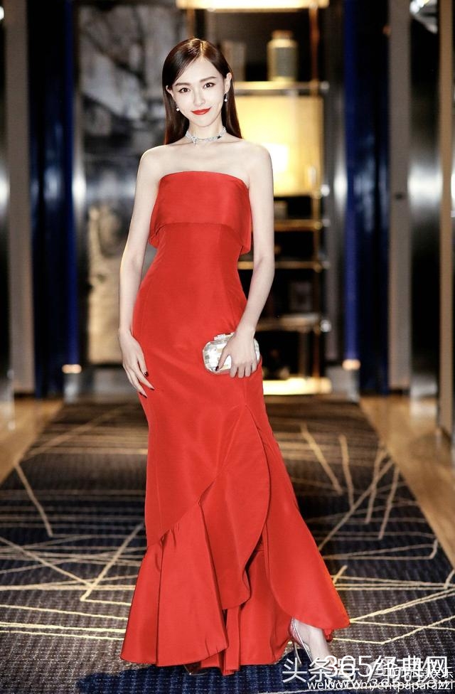 最近唐嫣参加活动的造型,嘉人晚会上的红裙