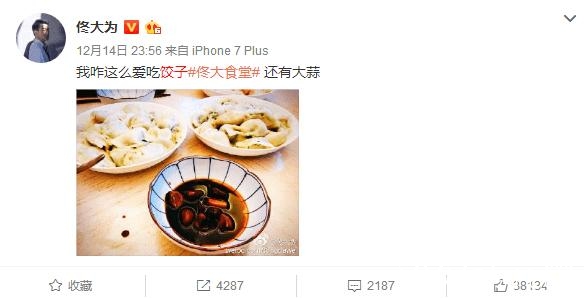 刚刚作为嘉宾参加完张杰演唱会的佟大为,对饺子也是情有独钟。不仅节日吃,平时也是常常翻牌。