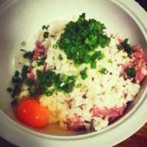 1、肉馅加葱姜末、盐、胡椒粉、鸡蛋、香油按一个方向搅拌上劲;