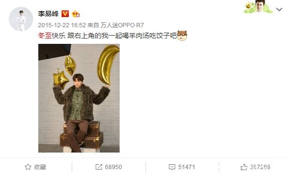 压轴国剧盛典红毯的李易峰,冬至不仅要吃饺子还要喝羊汤。真真是会搭配。