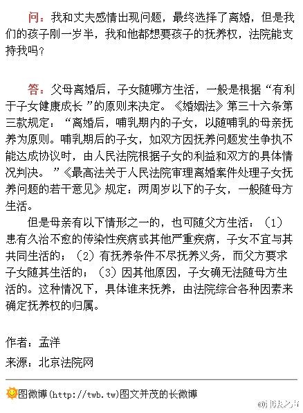 问:我和丈夫感情出现问题,最终选择了离婚,但是我们的孩子刚一岁半,我和他都想要孩子的抚养权,法院能支持我吗?