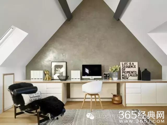 ▲每个房间都充满独立的个性色彩,休息室精致优雅,工作室结合小型图书馆的利落大方,位于阁楼的位置充满趣味性。