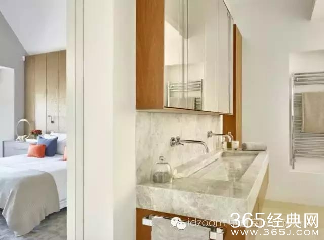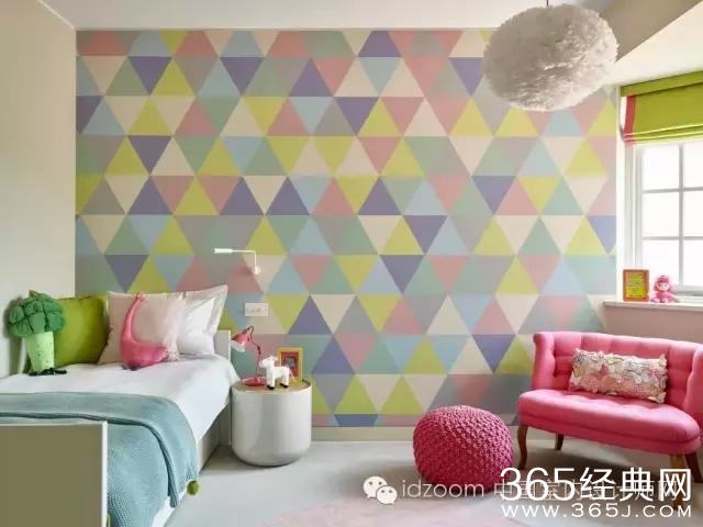 ▲儿童房选择色彩缤纷的几何壁纸,粉色沙发成为视觉焦点且充满梦幻感。主卧室舒适感十足,就连所带的浴室也十分精美。