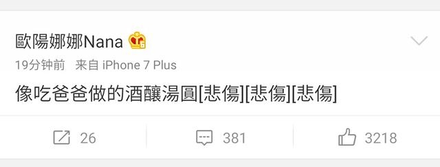 今天,欧阳娜娜发布了一条微博“像吃爸爸做的酒酿汤圆”
