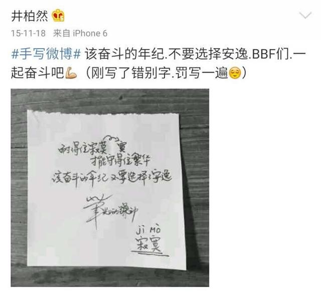 打错字有时是很正常哒~不过改过来的就不多了,和奶爸一样耿直承认的还有井宝,将字写的非常漂亮的井宝竟然也曾写过错字,但是他发现了给改过来啦~