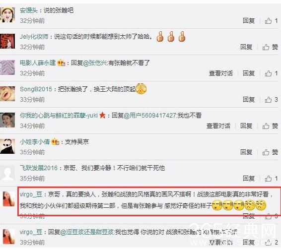 实力派吴京继续参演那是毋庸置疑的,不过张翰的加入让网友有些失望了。