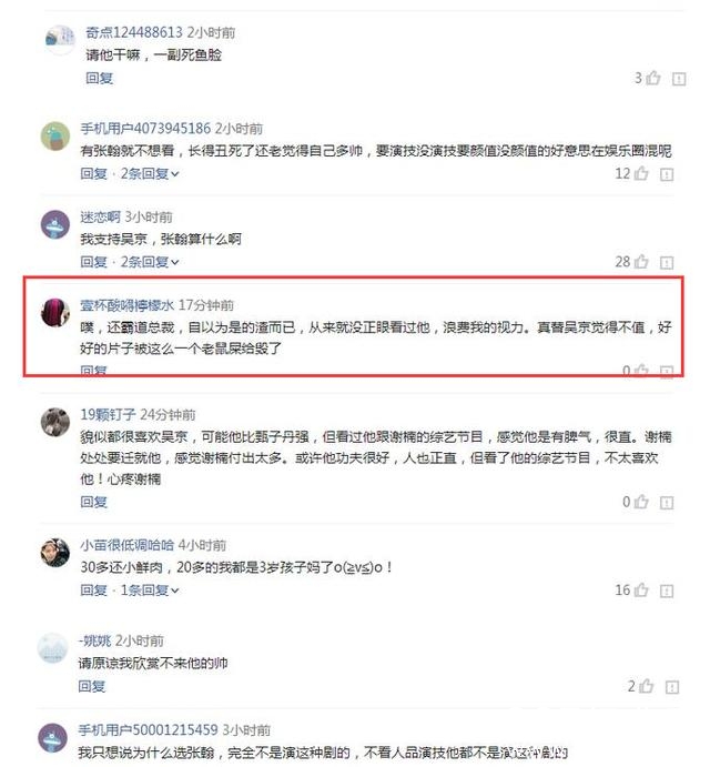 吴京选择张翰出演《战狼2》,一直是被人们热议的一个话题,吴京本人是个很好的演员,但是张翰,网友们对张翰本人的评价,简直是毁三观,只会耍帅、抽烟、泡妞,而吴京也曾经发微博投诉,而吴京本人也很讨厌某些小鲜肉演员。