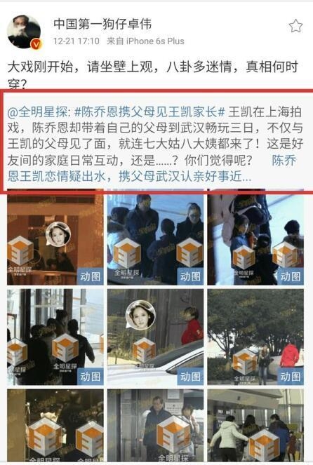 娱乐是个圈,是非永不断。刚刚爆出赫子铭和何洁离婚,如今第一狗仔卓伟又爆出王凯和陈乔恩恋情,据报道称王凯在武汉拍戏,而陈乔恩则带着父母和王凯父母家人一起游玩疑似见家长,对此报道,很多人表示怀疑,一是因为卓伟的错误爆料最近越来越多,而唐嫣罗晋,霍建华林心如等人的竟然一个没有报道,二是两人曾经一度在节目中澄清彼此只是好朋友。