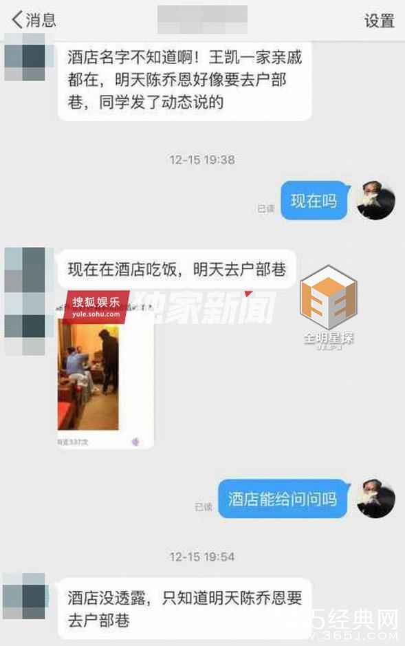 陈乔恩和助理一起去武汉的某酒楼,另一边王凯父母也带着家里的七大姑八大姨出现在酒楼楼下。