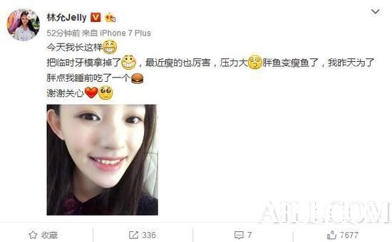 可能还是怕被骂,她这条微博还是对评论进行了设置。不过路人表示林允拿掉牙模看着好多了。没有对比就没有伤害,林允以前还是美的。