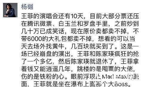 一票难求?呵呵,这次啊,王菲这次啊 真是玩砸了,有的哭了!不仅自己“偷鸡不成蚀把米”,更是成为第一个把黄牛坑死的明星,估计很长一段时间都要被人暗地里骂了!