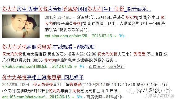 关悦也不是一个多红的演员,基本说到关悦前缀都是“佟大为的老婆”。小主搜她的名字,跳出来的联想是↓↓↓