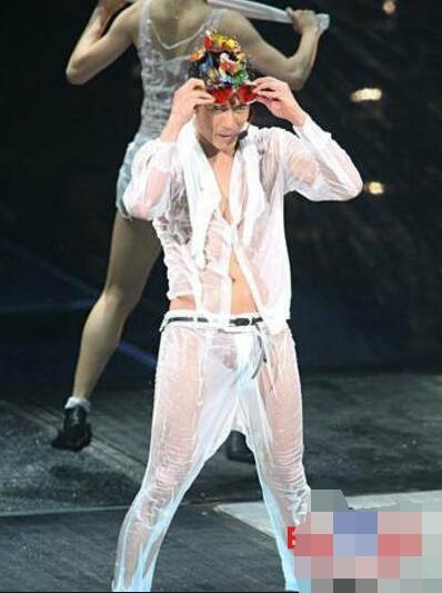 这还不是最尴尬的看看四大天王郭富城,在2008年的“舞林正传”世界巡回演唱会上,在进行“水花舞林”湿身演出时,尴尬走光,不知道天王是不是刻意而为之呢?