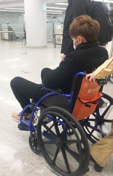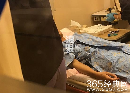 黄子韬在医院接受治疗↓