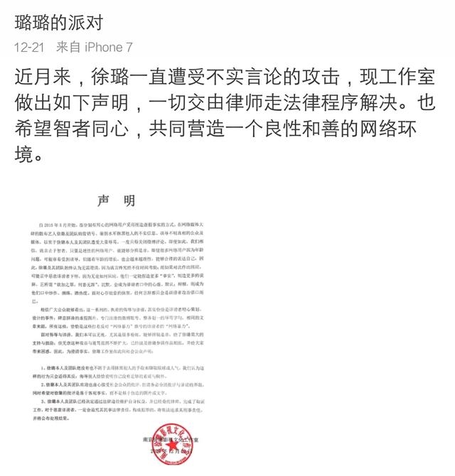 近日,徐璐深陷诬陷门,要采取法律手段维护自己的名誉,在娱乐圈闹得沸沸扬扬↓