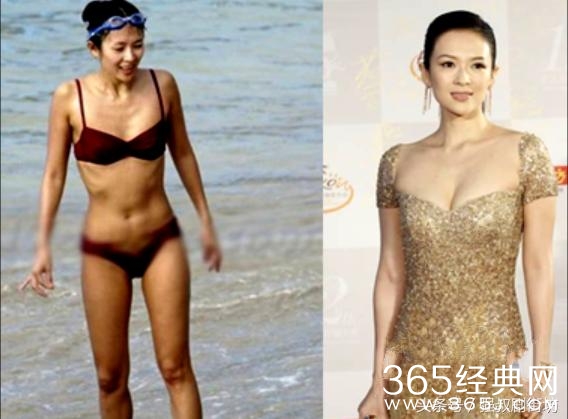 章子怡出席活动的时候,优雅的露出自己的爆乳,但是在穿上比基尼的时候就成为十足的排骨妹了。