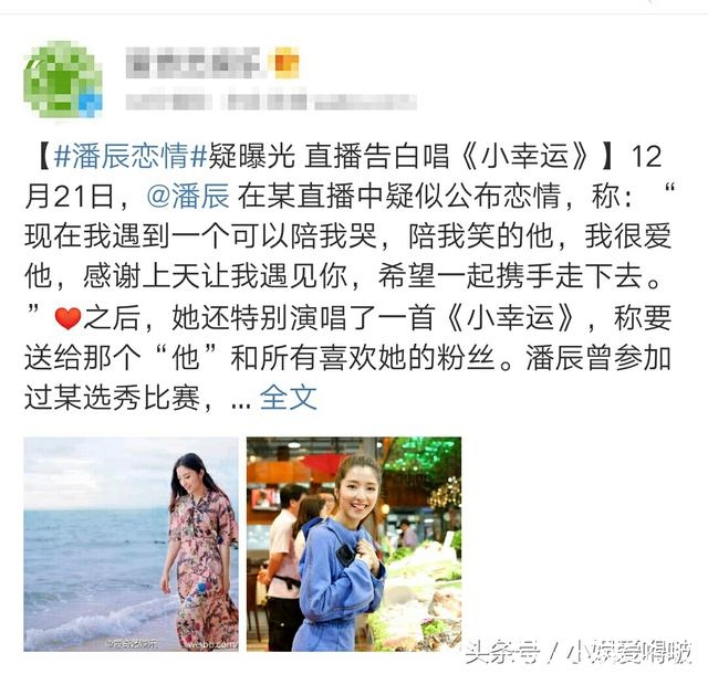 21日潘辰在直播中大方承认有了“那个他”,虽然到目前也没有公布“他”究竟是谁。还是收到了粉丝的祝福。