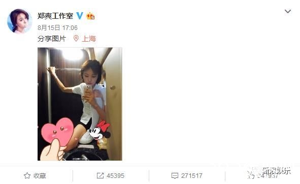 郑爽工作室最新一条微博更新时间是8月15日,一张郑爽自拍。然后就没有然后,直接停更了!